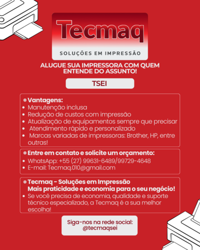 Atende Serra/ ESTecmaq é a solução em impressão. 🖨️Locação e Vendas de Impressoras ⚙️Manutenção de impressoras 🎨Recargas de Toner e Tinta 🔩Venda de Suprimentos de Impressora
