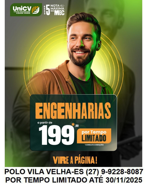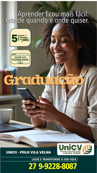 Rua Henrique Laranja 434. Centro - Vila Velha/ ESUm polo EAD perto de você!🔵Na UniCV você tem: •Graduação •Pós-Graduação •Clube de Vantagens•Metodologia Dinâmica•Reconhecimento MEC