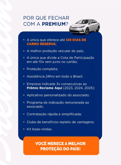 Proteja seu veículo com a confiança que você merece. Conheça o Premium Clube de Benefícios!