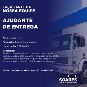 Benefícios: Salário compatível com o mercado, assistência médica e odontológica, vale transporte ou bicicleta, ATRON seguro de vida, previdência privada, cesta básica, alimentação local, vale refeição para as viagens.