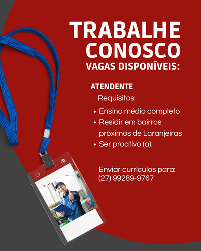 Estamos em busca de um(a) profissional dinâmico(a), com boa comunicação e perfil comercial para integrar nossa equipe de vendas!
