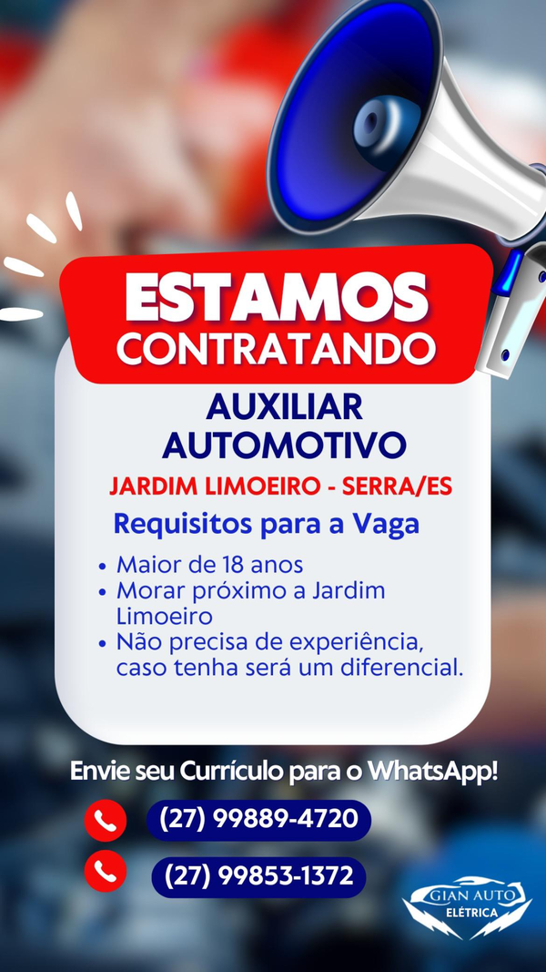 Ou entregar presencialmente nas lojas Gian auto elétrica.