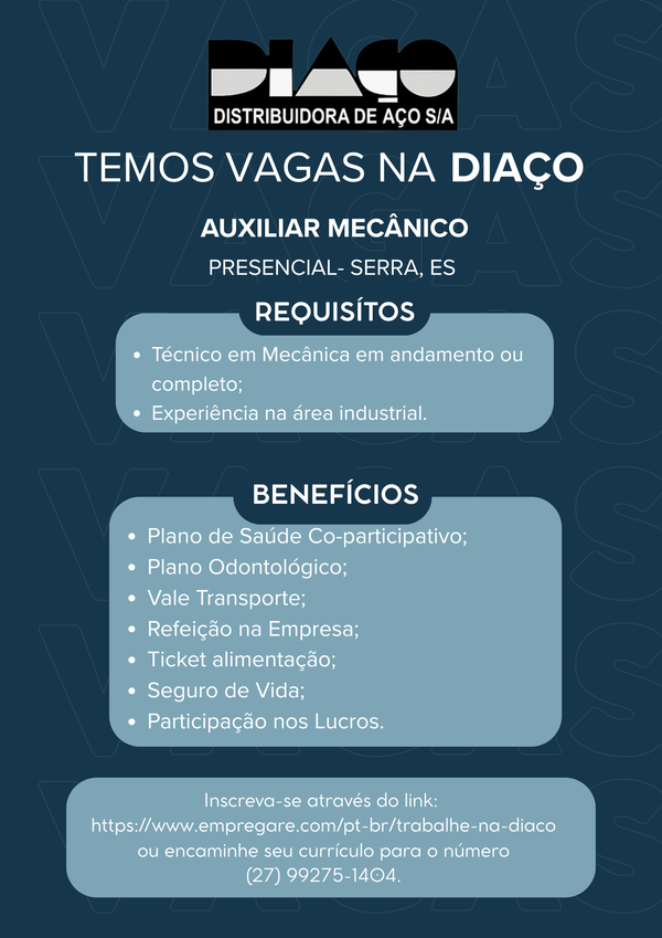 💡 Se você é organizado, proativo e deseja crescer na área de manutenção industrial, essa pode ser a sua oportunidade!