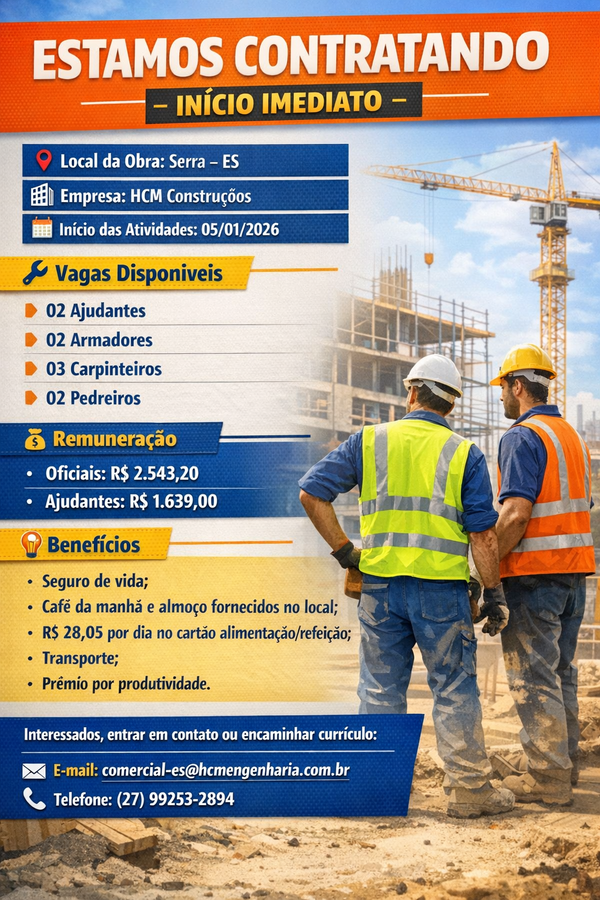 ESTAMOS CONTRATANDO – INÍCIO IMEDIATO