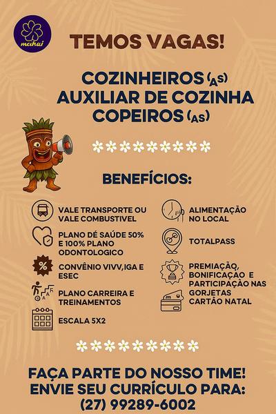 Exibir dicasCuidado com ofertas de emprego que solicitam o pagamento de taxa, exame admissional ou compra de certificados de cursos.