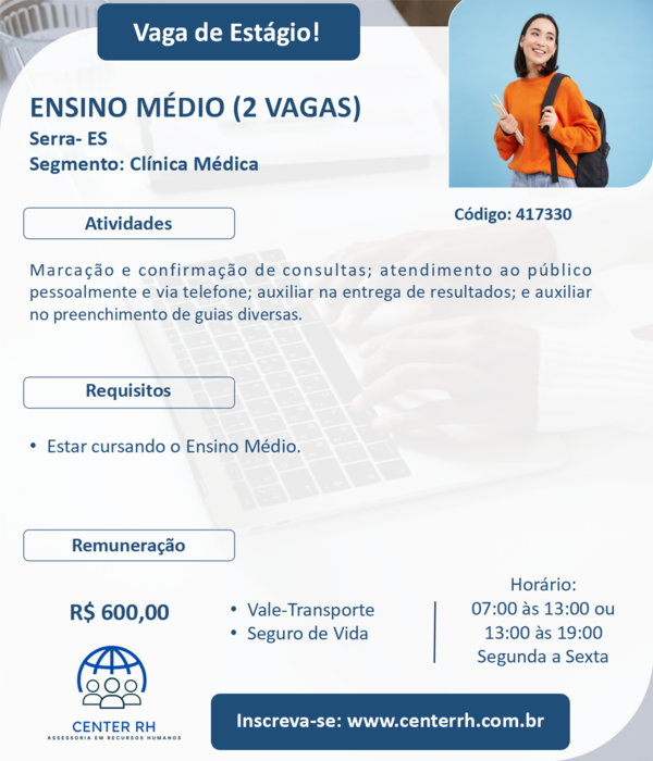 CLÍNICA MÉDICA CONTRATA ESTAGIÁRIO(A).