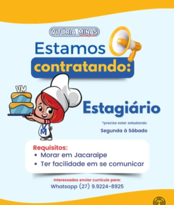 Exibir dicasCuidado com ofertas de emprego que solicitam o pagamento de taxa, exame admissional ou compra de certificados de cursos.