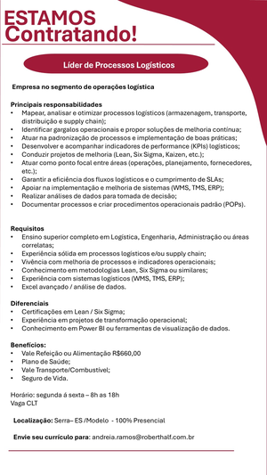 Ensino superior completo em Logística, Engenharia, Administração ou áreas correlatas