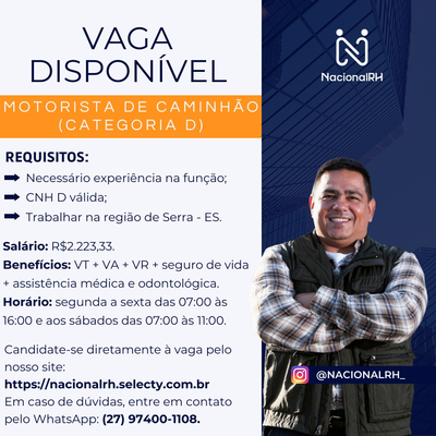 MOTORISTA DE CAMINHÃO (CATEGORIA D)