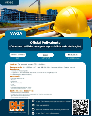 Oficial Polivalente (Cobertura de Férias com grande possibilidade de efetivação)