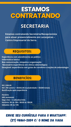 Estamos contratando Secretária/Recepcionista